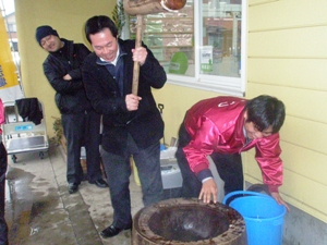 開催日: 2011年2月11日(金)建国記念日 開催場所: アイライフ所沢店 店頭 アイライフ初のもちつき大会を行いました。もち米を蒸して、ついて、丸めて、味付け、全て手作りです。きなこもち、からみもち、お汁粉の3種類を作りました。今年初めての雪の中、つきたての温かいおもちが大変美味しく好評でした。