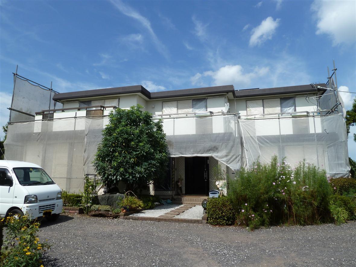 それから、窓など塗装をしない部分の養生をして、下塗り、中塗り、上塗りと通常3回程塗ります。