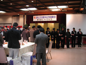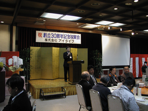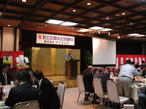 アイライフは地域に根付いてお陰様で満30周年を迎えることができました。 先日、記念の祝賀会を狭山市のニックスにて行いました。 お忙しい中、協力施工業者の皆様、メーカー担当者様、問屋担当者様、その他 関係して下さっている方々多数に御臨席賜り、また、多くの御祝辞を頂き 改めまして感謝申し上げます。 今後も従業員一同、気を引き締めてサービスに努めてまいりますので、 今後とも御指導と御支援のほどよろしくお願い申し上げます。